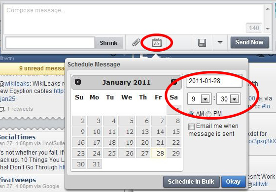 از طرف دیگر، اگر هیچ گزینه ای برای زمانبندی بدین طریق وجود نداشته باشد، شما می توانید از ابزارهای زمانبندی آنلاین متفاوت، مانند هوت سوت (hootsuite) استفاده کنید. این ابزار برای مثال به شما کمک می کند چندین حساب رسانه اجتماعی را ادغام کنید و فعالیت قرار دادن محتوا را از طریق داشبورد مدیریت نمایید. می توانید به هنگام زمانبندی یک مطلب خاص، زمان و داده های دقیق را انتخاب کنید و حتی به طور همزمان در چندین شبکه اجتماعی متفاوت زمانبندی را به یکباره انجام دهید.